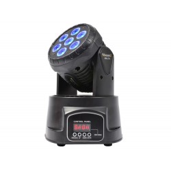 Testa mobile wash a LED molto compatta per uso professionale in teatri, palcoscenici, concerti, studi televisivi, discoteche, etc. E' basata su 7 Quad LED da 10W per un'altissima resa luminosa che producono un ingegnoso show di luci con una perfetta miscela di colori. Angolo di proiezione di 15°, modalità DMX da 7 e 12 canali, strobo colore, dimmer elettronico, etc. I movimenti di pan a 540° e tilt a 180° sono armoniosi e velocissimi.