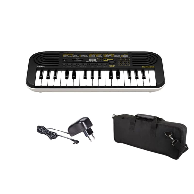 Mini tastiera compatta con 32 mini tasti in modo che anche le mani più piccole possano suonarli facilmente, 100 suoni di alta qualità che coprono una vasta gamma di strumenti, tra cui pianoforte, strumenti a fiato e a percussione e molti altri, campionati da strumenti reali. I pulsanti Tone direct consentono di selezionare i toni del pianoforte, della tromba o della batteria con un solo tocco, 50 modelli di ritmo in una vasta gamma di generi, tra cui pop, ballate, dance e 10 brani integrati da riprodurre insieme, oppure disattivare l'audio della melodia e riprodurla da soli.