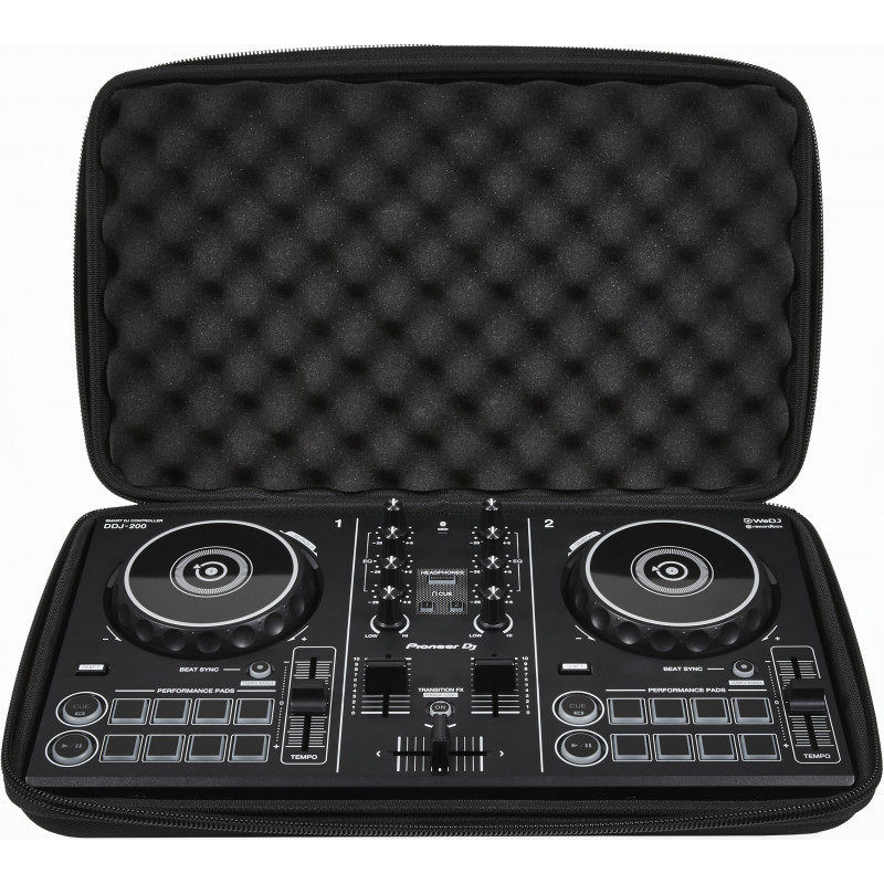 Questa borsa per controller DJ calza a pennello sui modelli DDJ-200. Il rivestimento velluatto e la schiuma alveolata di protezione della borsa prevengono i danni provocati da urti e vibrazioni.